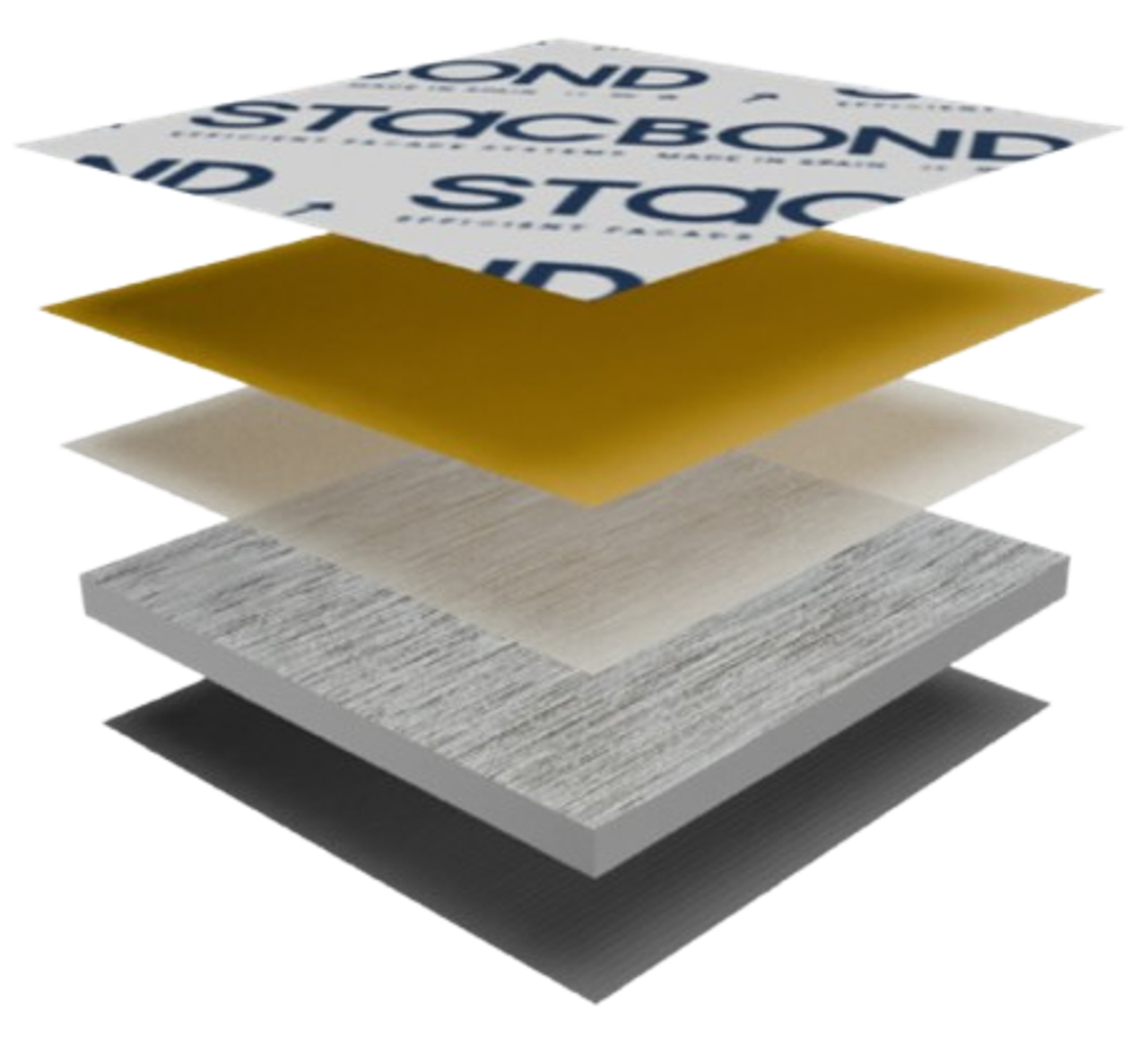 In seiner Standardzusammensetzung besteht dieses Produkt aus einem Aussenblech aus einer Aluminiumlegierung 5005 und einem Innenblech aus einer Legierung 3005. Je nach ihrer mineralischen Belastung sind drei verschiedene Kerne erhältlich, die nicht brennbar oder feuerhemmend werden und (gemäss UNE 13501-1:2007) als A2-s1 d0 (STACBOND® A2) und B-s1, d0 (STACBOND® FR) klassifiziert sind.